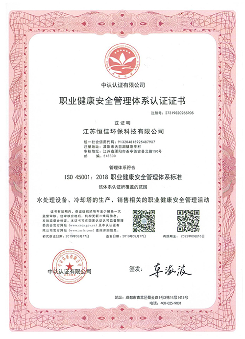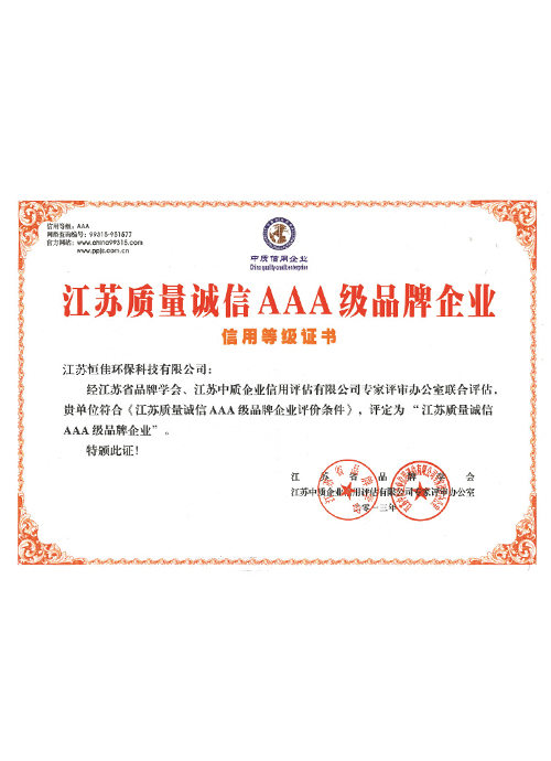 經(jīng)過多年來的不懈努力,公司已經(jīng)形成良好的管理和運作體系。獲得了<江蘇質(zhì)量誠信3a品牌企業(yè)>榮譽證書 并已通過ISO9001質(zhì)理管理體系認證、ISO1400環(huán)境管理體系標準及 ISO45001職業(yè)健康管理體系標準。
